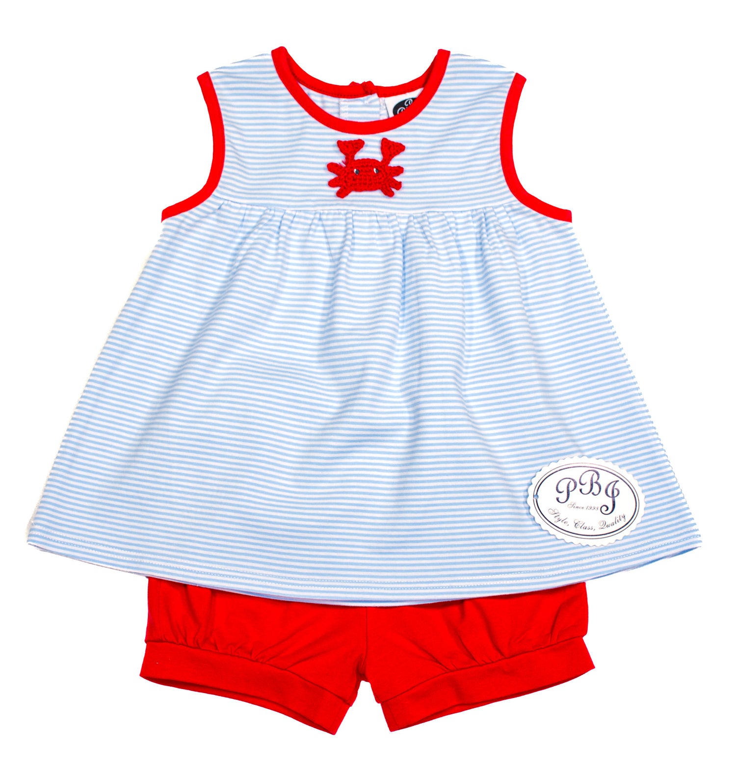 Blue stripes sleeveless Noah top with solid red contrast. Bottoms or Crochet sold separately.
